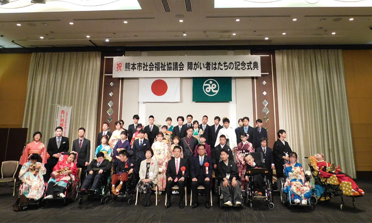 地域福祉活動について熊本市にお住まいの障がいのある方を対象に昭和56年から 毎年、1月の成人の日に併せて、福祉団体や企業・団体からの ご協力をいただき、式典を開催しています。